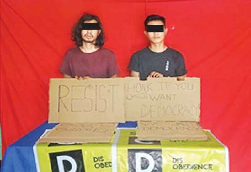 ရှမ်းပြည်နယ်(တောင်ပိုင်း)၊ တောင်ကြီးမြို့နယ်အတွင်းရှိ အများပြည်သူများအေးချမ်းစွာ နေထိုင်နိုင်ရေးအတွက် လုံခြုံရေးလုပ်ငန်းများဆောင်ရွက်နေသည့် လုံခြုံရေးတပ်ဖွဲ့ဝင် များသည် မတ် ၂၂ ရက် ည ၈ နာရီ ၄၀ မိနစ် ခန့်တွင် အနောက်မြို့ပတ်လမ်း၊ ကျောင်းကြီးစုရပ်ကွက်၊ Mytel ရုံးအနီး၌ မသင်္ကာဖွယ် ဆိုင်ကယ် ၄ စီးအား စစ်ဆေးရန် တားဆီးစဉ် နောက်ပြန်လှည့်မောင်းနှင်ထွက်ပြေးသဖြင့် လုံခြုံရေးတပ်ဖွဲ့ဝင်များက လုပ်ထုံး လုပ်နည်း များနှင့်အညီ ခြောက်လှန့်ပစ်ခတ်ဖမ်းဆီးခဲ့ရာ ရွှေဖြူကျေးရွာနေ ရှိုင်းဘိုဘို(ဘ) ဦးသိန်းတန်နှင့် ကျောင်းကြီး စုရပ်ကွက်၊ ဖရဲလမ်းနေ သိန်းဇော်မြင့်(ဘ)ဦးစိန်လင်း တို့အား မီးရှို့ရန်အဝတ်စဖြင့် အသင့်ပြုလုပ်ထားသော ဓာတ်ဆီ ၃ ပုလင်းနှင့်အတူ ဖမ်းဆီးရမိခဲ့ သည်။