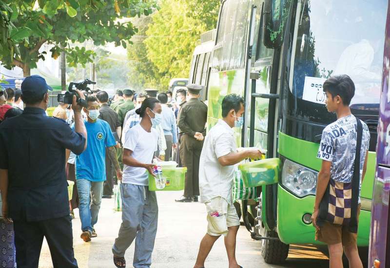 နိုင်ငံတော်စီမံအုပ်ချုပ်ရေးကောင်စီဥက္ကဋ္ဌ တပ်မတော်ကာကွယ်ရေးဦးစီးချုပ် ဗိုလ်ချုပ်မှူးကြီး မင်းအောင်လှိုင်၏ လမ်းညွှန်မှာကြားချက်အရ တပ်မတော်(ရေ)မှ စစ်ရေ ယာဉ်များဖြင့် သွားရောက်ခေါ်ဆောင်ခဲ့သည့် အိန္ဒိယနိုင်ငံ၊ အန်ဒမန်ကျွန်းမှ ပြန်လည် ရောက်ရှိလာသည့် မြန်မာနိုင်ငံသား ရေလုပ်သား ၇၀ ဦးကို ရန်ကုန်တိုင်းဒေသကြီး၊ လှိုင်မြို့နယ်၊ စစ်ကြောရေးနှင့်တည်းခိုရေးစခန်းရှိ COVID-19 ရောဂါ သီးသန့်စောင့်ကြည့်ရမည့်သူများ ထားရှိသည့် Quarantine Center ၌သီးသန့်ထားရှိရာ ယနေ့တွင် သတ်မှတ်ရက် ပြည့်မြောက် သဖြင့် သက်ဆိုင်ရာပြည်နယ်နှင့် တိုင်းဒေသကြီးအသီးသီးသို့ တပ်မတော်နှင့် တာဝန်ရှိသူများက စီစဉ်ပေးသည့် မော်တော်ယာဉ်များဖြင့် လိုက်လံပို့ဆောင်ပေးသည်။