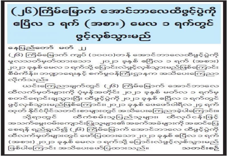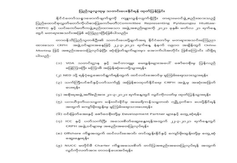 (၂၀၂၁ ခုနှစ်၊ မတ်လ (၂၃)ရက်နေ့၊ နံနက်(၁၀:၃၀)နာရီအချိန် ထုတ်ပြန်ချက်)