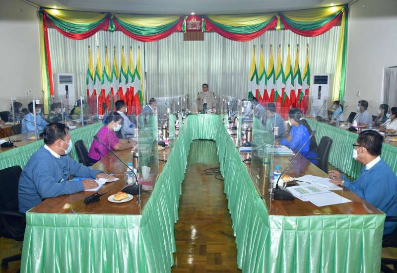 ဧရာဝတီတိုင်းဒေသကြီး စီမံအုပ်ချုပ်ရေးကောင်စီနှင့် တိုင်းဒေသကြီးအဆင့် ဌာနဆိုင်ရာများ တွေ့ဆုံသည့် လုပ်ငန်းညှိနှိုင်း အစည်းအဝေး(၂/၂၀၂၁)ကို မတ် ၁၉ ရက်က ပုသိမ်မြို့ရှိ ဧရာရွှေဝါ ခန်းမ၌ ကျင်းပသည်။