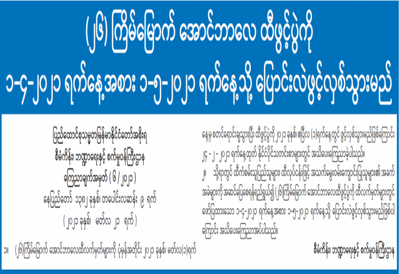 (၂၀၂၁ ခုနှစ်၊ မတ်လ (၂၂)ရက်နေ့ ည(၇:၀၀)နာရီအချိန် ထုတ်ပြန်ချက်)