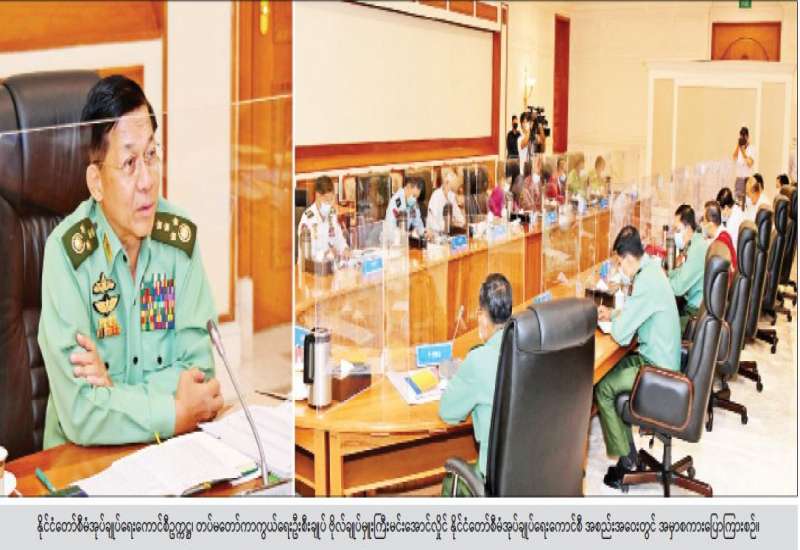 နိုင်ငံတော်စီမံအုပ်ချုပ်ရေးကောင်စီ အစည်းအဝေး(၆/၂၀၂၁)ကို ယနေ့ နံနက်ပိုင်းတွင် နေပြည်တော်ရှိ နိုင်ငံတော်စီမံအုပ်ချုပ်ရေးကောင်စီဥက္ကဋ္ဌရုံး အစည်းအဝေးခန်းမ၌ ကျင်းပရာ နိုင်ငံတော်စီမံအုပ်ချုပ်ရေးကောင်စီဥက္ကဋ္ဌ၊ တပ်မတော်ကာကွယ်ရေးဦးစီးချုပ် ဗိုလ်ချုပ်မှူးကြီး မင်းအောင်လှိုင် တက်ရောက်အမှာစကားပြောကြားသည်။