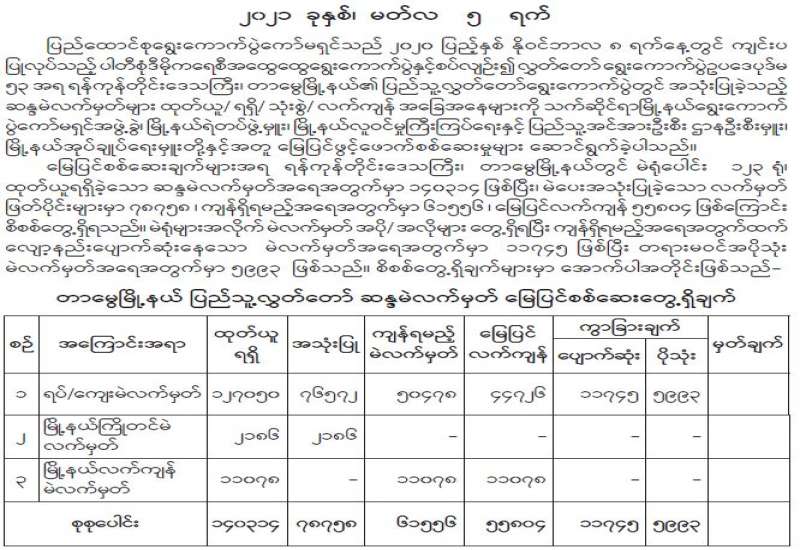(၂၀၂၁ ခုနှစ်၊ မတ်လ (၆)ရက်နေ့ နံနက်(၇:၀၀)နာရီအချိန် ထုတ်ပြန်ချက်)