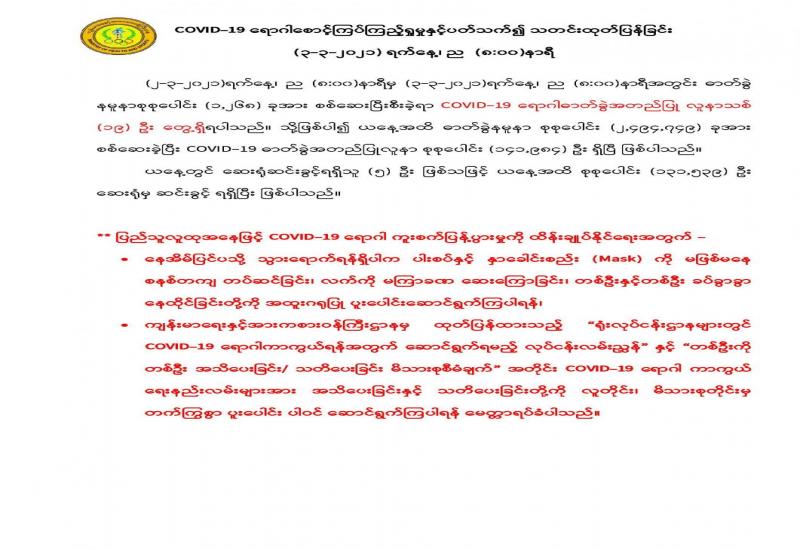 (၂၀၂၁ ခုနှစ်၊ မတ်လ (၃)ရက်နေ့၊ နံနက်(၁၀:၃၀)နာရီအချိန် ထုတ်ပြန်ချက်)