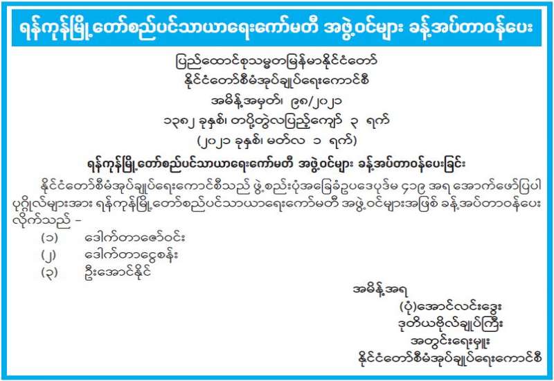 ရန်ကုန်တိုင်းဒေသကြီး၊ မြို့နယ်အသီးသီးတွင် လူစုလူဝေးများဖြင့် စုဝေးဆန္ဒပြသူများအား တာဝန်ရှိသူများက ဆုံးမ စကားပြောကြားပြီး အင်းစိန်အကျဉ်းထောင်တွင် ခေတ္တထိန်းသိမ်း ထားရာမှ နေရပ်အသီးသီးသို့ မော်တော် ယာဉ်များဖြင့် ယနေ့ နံနက်ပိုင်းတွင် ပြန်လည်ပို့ဆောင် ပေးခဲ့ကြောင်း သိရသည်။