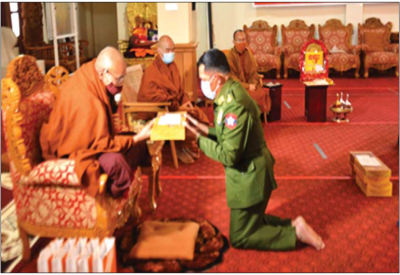 နိုင်ငံတော်နှင့် တပ်မတော်အတွက် အသက်ပေးလှူခဲ့ရသည့်အရာရှိ၊ စစ်သည်များ၏ မိသားစု ဝင်များ၊ စစ်မှုထမ်းဟောင်း အဖွဲ့ဝင်များနှင့် မိသားစုဝင်များ၊ ရဲမှုထမ်းဟောင်းအဖွဲ့ဝင်များ၊ ပြည်သူ့စစ်(ဌာနေ) တပ်ဖွဲ့ဝင်များနှင့်မီးသတ်တပ်ဖွဲ့ဝင် များအတွက် ကိုဗစ်-၁၉ ရောဂါ ကာကွယ်၊ ထိန်းချုပ်၊ ကုသရေး လုပ်ငန်းများ ဆောင်ရွက်နေသည့်ကာလအတွင်း အသွားအလာ ကန့်သတ်ချက်များကြောင့် စားရေး အခက်အခဲ မရှိစေရန် ဆန်၊ ဆီ၊ ဆား၊ ပဲ အမယ်လေးမျိုးနှင့် ကိုဗစ်- ၁၉ ရောဂါကာကွယ်ရေး အထောက်အကူပြုပစ္စည်း များကို သက်ဆိုင်ရာ တိုင်းစစ်ဌာန ချုပ်များ၊ စစ်မှုထမ်းဟောင်းရုံး အိမ်ရာများ၊ တပ်နယ်ခန်းမများနှင့် ရဲတပ်ဖွဲ့မှူးရုံး တို့၌ ပေးအပ်လျက်ရှိသည်။
