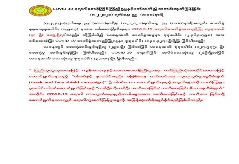 (၂၀၂၁ ခုနှစ်၊ ဖေဖော်ဝါရီလ (၉)ရက်နေ့ ည(၇:၀၀)နာရီအချိန် ထုတ်ပြန်ချက်)