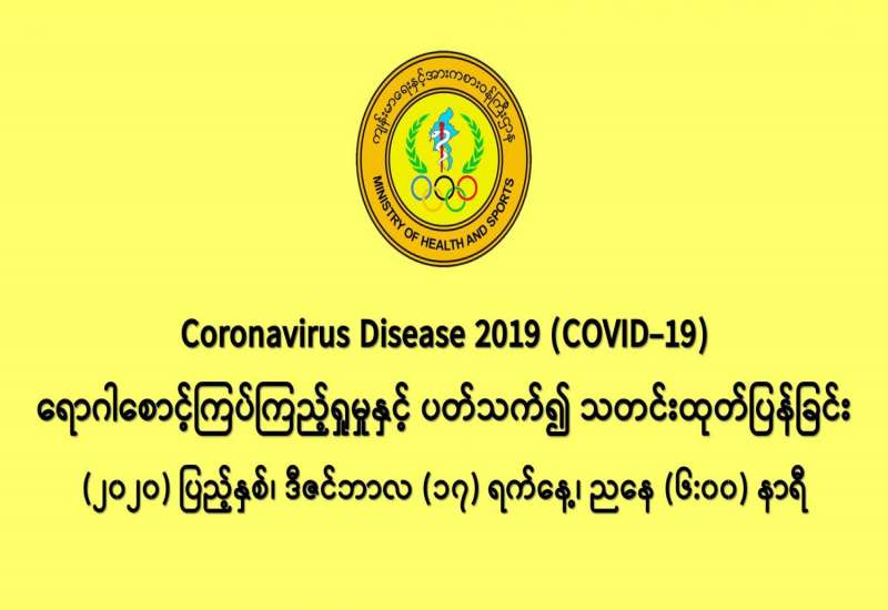 (၁၆-၁၂-၂၀၂၀) ရက်နေ့၊ ည (၈:၀၀) နာရီမှ (၁၇-၁၂-၂၀၂၀) ရက်နေ့၊ ည (၈:၀၀) နာရီ အတွင်း ဓာတ်ခွဲနမူနာ စုစုပေါင်း (၂၃,၁၈၈) ခုအား စစ်ဆေးပြီးစီးခဲ့ရာ COVID-19 ရောဂါ ဓာတ်ခွဲအတည်ပြု လူနာသစ် (၁,၁၈၂) ဦး တွေ့ရှိရပါသည်။