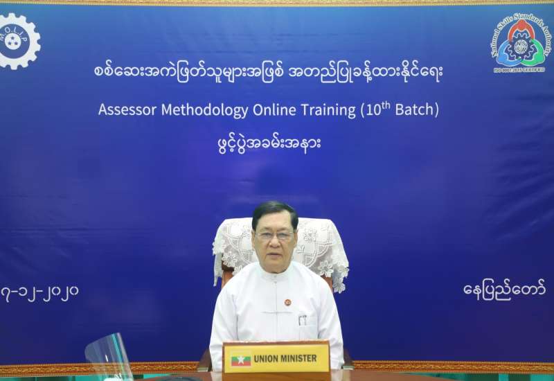 မြန်မာနိုင်ငံ လုပ်သားများ ကျွမ်းကျင်မှု “စံ” သတ်မှတ်ပြဋ္ဌာန်းရေးအဖွဲ့ (NSSA) ၏ စစ်ဆေး အကဲဖြတ်သူများအဖြစ် အတည်ပြု ခန့်ထားနိုင်ရေး Online ဖြင့် ပို့ချသော Assessor Methodology Online Training (10th Batch)ဖွင့်ပွဲအခမ်းအနားကို ယနေ့ နံနက် ၁၀ နာရီတွင် နေပြည်တော်ရှိ အလုပ်သမား၊ လူဝင်မှုကြီးကြပ်ရေးနှင့် ပြည်သူ့အင်အား ဝန်ကြီးဌာန အစည်း အဝေးခန်းမ၌ ဗီဒီယို ကွန်ဖရင့်စနစ်ဖြင့် ကျင်းပသည်။