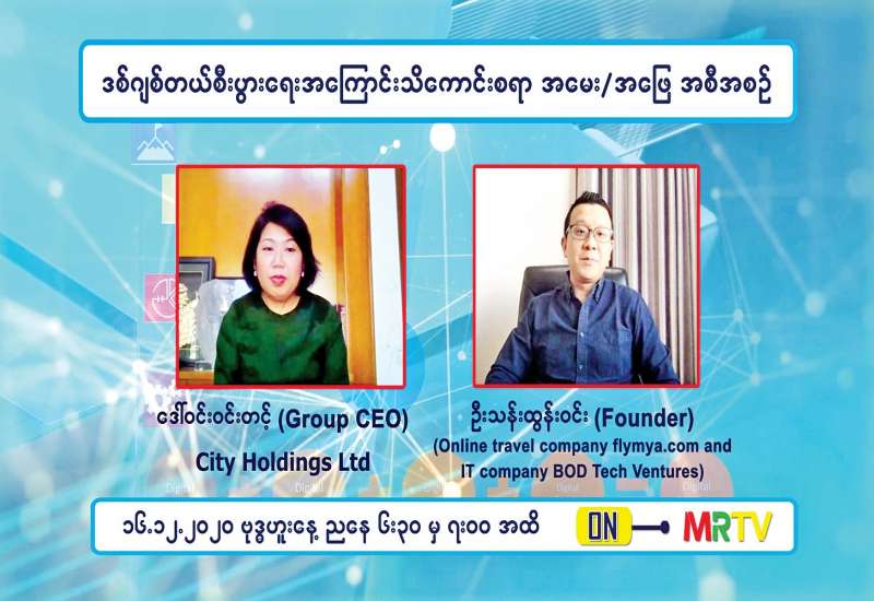 COVID-19 ရောဂါဖြစ်ပွားမှုကာလအတွင်း စီးပွားရေးလုပ်ငန်းများ ပြန်လည်လုပ်ကိုင်လည်ပတ်နိုင်ရန် ရည်ရွယ် ချက်ဖြင့် ပြည်သူကို အသိပညာ မျှဝေပေးမည့် “ဒစ်ဂျစ်တယ် စီးပွားရေးအကြောင်း သိကောင်းစရာ အမေး/အဖြေ အစီအစဉ်”ကို နိုဝင်ဘာ ၂၅ ရက်မှစ၍ အပတ်စဉ် ဗုဒ္ဓဟူးနှင့် ကြာသပတေးနေ့များတွင် ညနေ ၆ နာရီခွဲမှ ည ၇ နာရီအထိ မြန်မာ့အသံနှင့် ရုပ်မြင်သံကြားမှ ထုတ်လွှင့်ပြသလျက် ရှိသည်။