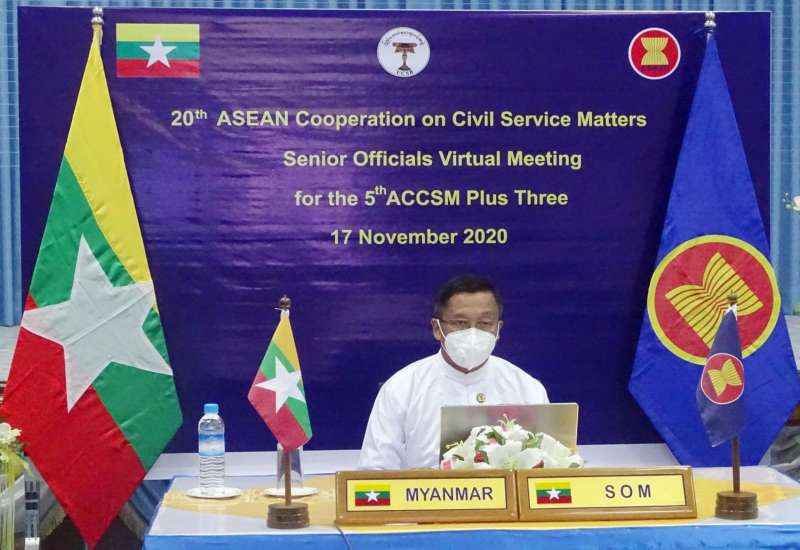 အကြိမ်(၂၀)မြောက် အာဆီယံနိုင်ငံ့ဝန်ထမ်း အဖွဲ့အစည်းဆိုင်ရာ အဆင့်မြင့် အရာရှိကြီး များ အစည်းအဝေးနှင့် (၅)ကြိမ်မြောက် အာဆီယံ+၃ နိုင်ငံ့ဝန်ထမ်းအဆင့်မြင့်အရာရှိကြီးများ အစည်းအဝေးကို ယနေ့နံနက်ပိုင်းတွင် ဗီဒီယိုကွန်ဖရင့် စနစ်ဖြင့် ကျင်းပသည်။