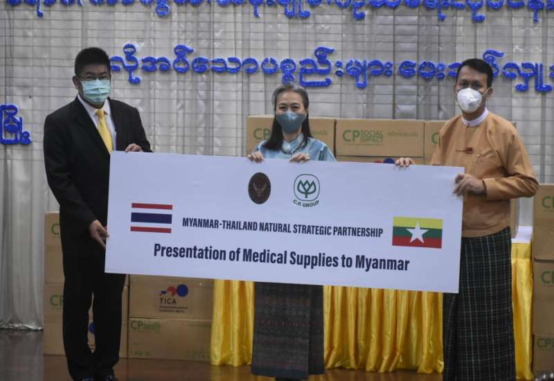 ရန်ကုန်တိုင်းဒေသကြီး ကိုဗစ် - ၁၉ ရောဂါ ကာကွယ်ရေးလုပ်ငန်းများတွင်အသုံးပြုရန် ရန်ကုန်တိုင်း ဒေသကြီးအစိုးရအဖွဲ့ထံ MYANMAR C.P LIVE STOCK Co. Ltd မှ Surgical Mask ၃၀၀၀၀၀ (သုံးသိန်း) လှူဒါန်းသည့် အခမ်းအနားကို တိုင်းဒေသကြီးအစိုးရအဖွဲ့ရုံး မင်္ဂလာခန်းမ တွင် ယနေ့ နံနက်က ကျင်းပသည်။
