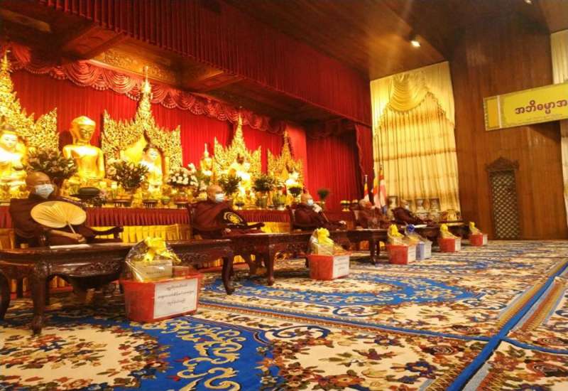 မြန်မာပြည်သူပြည်သားများ၊ ကမ္ဘာသူ ကမ္ဘာသားများ Covid-19 ကပ်ရောဂါ ဘေးကင်းဝေးပြီး ကိုယ်ကျန်းမာ စိတ်ချမ်းသာရေး ရည်မျှော်တွေးလျက် ၁၃၈၂ ခုနှစ် သီတင်းကျွတ်လပြည့်နေ့ ယနေ့ နံနက် ၇ နာရီ မိနစ် ၂၀ တွင် ထေရဝါဒ ဗုဒ္ဓသာသနာတော်၏ ဘူမိနက်သန်အောင်မြေ အမှန်ဖြစ်သည့် ရန်ကုန်မြို့ မရမ်းကုန်းမြို့နယ် သီရိကမ္ဘာအေးကုန်းမြေ ဆဋ္ဌသင်္ဂါယနာတင် သာသနာ့ သမိုင်းဝင် မဟာ ပါသာဏလိုဏ်ဂူတော် သိမ်တော်ကြီး၌ နိုင်ငံတော်သံဃ မဟာ နာယကအဖွဲ့ အကျိုးတော်ဆောင် သန်လျင်မင်းကျောင်းဆရာတော် အဂ္ဂမဟာပဏ္ဍိတ အဂ္ဂမဟာ သဒ္ဓမ္မ ဇောတိကဓဇ ဘဒ္ဒန္တစန္ဒိမာဘိဝံသ အမှူးပြုသော နိုင်ငံတော်သံဃ မဟာနာယကအဖွဲ့ ဆရာတော်ကြီး ၁၅ ပါးတို့သည် အန္တရာယ်ကင်း ပရိတ်တရားတော်များ၊ အနန္တရာယိက အန္တရာယ်ကင်း ကမ္မဝါစာများ ရွတ်ဖတ် ပူဇော်တော်မူကြသည်။