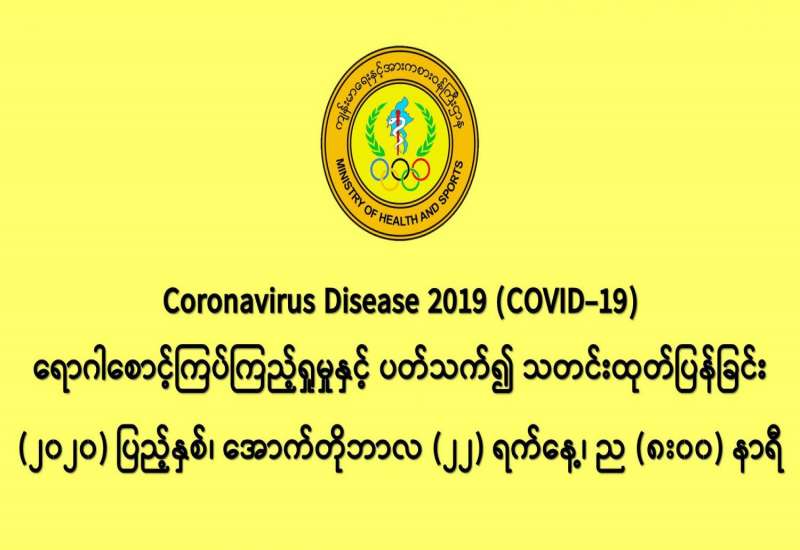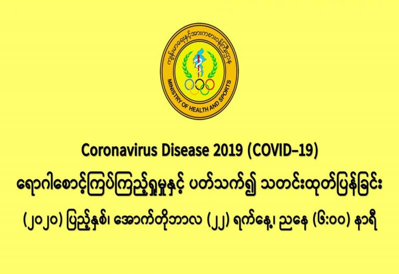 မြန်မာနိုင်ငံတွင် ကိုဗစ်-၁၉ ရောဂါပိုး စတင်တွေ့ရှိခဲ့သည့် ၂၀၂၀ ပြည့်နှစ် မတ်လ ၂၃ ရက်နေ့မှ အောက်တိုဘာလ ၂၀ ရက်နေ့အထိ ရောဂါပိုး ရှိ၊ မရှိ လူဦးရေ ၅၃၈၀၈၆ ဦးကို ဓာတ်ခွဲစစ်ဆေးခဲ့ရာ ရောဂါပိုးတွေ့သူ ၃၈၅၀၂ ဦး၊ သေဆုံးသူ ၉၄၅ ဦးနှင့် ရောဂါပျောက်ကင်းသူ ၁၈၁၄၇ ဦးရှိသည်ကို တွေ့ရမည်ဖြစ်သည်။
