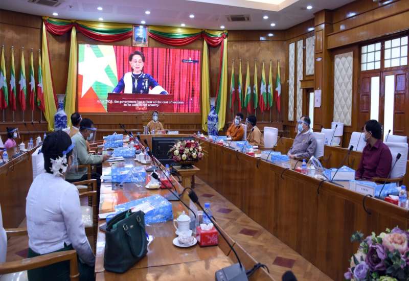 ပဲခူးတိုင်းဒေသကြီး အစိုးရအဖွဲ့ရုံး၊ အစည်းအဝေးခန်းမ၌ ယမန်နေ့မွန်းလွဲ ၁ နာရီက ပဲခူးတိုင်းဒေသကြီး ကိုဗစ်-၁၉ ရောဂါ ထိန်းချုပ်ရေးနှင့် အရေးပေါ်တုံ့ပြန်ရေးကော်မတီ လုပ်ငန်းညှိနှိုင်း အစည်းအဝေးကို Video Conferencing ဖြင့် ကျင်းပခဲ့သည်။