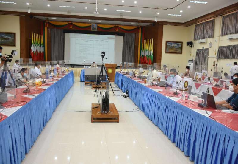 ရန်ကုန်တိုင်းဒေသကြီးတွင် လက်ရှိဆောင်ရွက်နေသည့် ကိုဗစ်-၁၉ ကာကွယ်၊ ထိန်းချုပ်၊ ကုသရေး လုပ်ငန်းများ ဆန်းစစ်သုံးသပ်မှု အစည်းအဝေးကို ယနေ့မွန်းလွဲပိုင်းတွင် Videoconferencing စနစ်ဖြင့် ကျင်းပသည်။