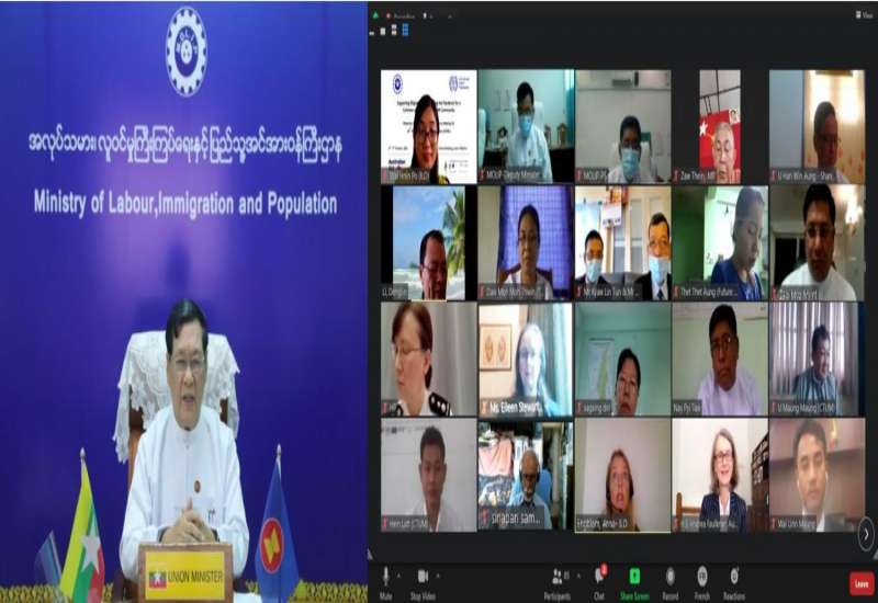 အလုပ်သမား၊ လူဝင်မှုကြီးကြပ်ရေးနှင့် ပြည်သူ့အင်အားဝန်ကြီးဌာနနှင့် အပြည်ပြည်ဆိုင်ရာ အလုပ်သမား ရေးရာအဖွဲ့ (International Labour Organization-ILO) တို့ပူးပေါင်း၍ (၁၃) ကြိမ် မြောက်ရွှေ့ ပြောင်းအလုပ်သမားဆိုင်ရာ အာဆီယံဖိုရမ်အတွက် နိုင်ငံအဆင့် သုံးပွင့်ဆိုင် အကြိုလုပ်ငန်းညှိနှိုင်း အစည်း အဝေးဖွင့်ပွဲ အခမ်းအနားကို ယနေ့နံနက် ၉ နာရီခွဲတွင် Virtual Meeting ဖြင့် ကျင်းပသည်။