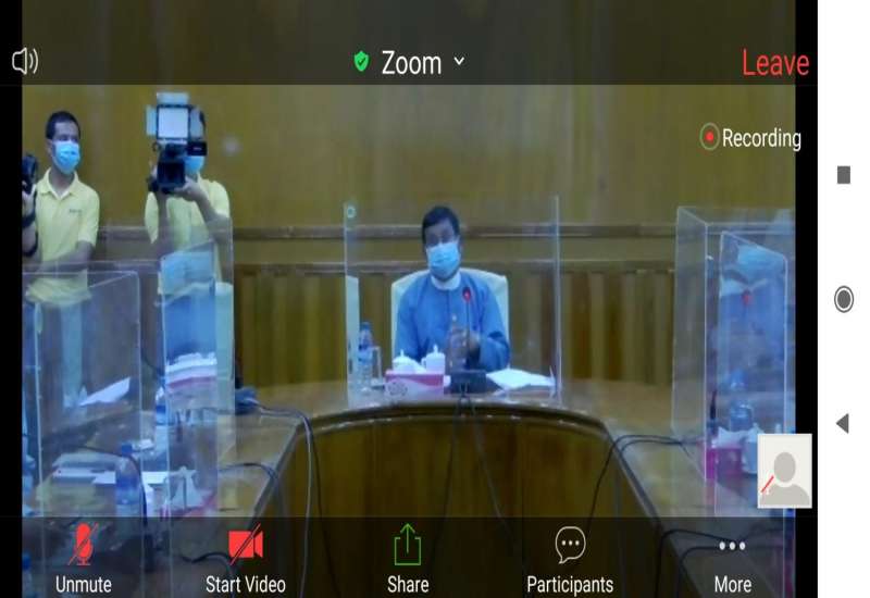 ကျန်းမာရေးနှင့်အားကစားဝန်ကြီးဌာန၏ ကိုဗစ်-19 ကပ်ရောဂါ ကာကွယ်၊ ထိန်းချုပ်၊ ကုသရေးလုပ်ငန်းဆိုင်ရာ ပုံမှန်ညှိနှိုင်းအစည်းအဝေးကို ယနေ့နံနက် ၉ နာရီတွင် Video Conferencing စနစ်ဖြင့် ပြုလုပ်သည်။