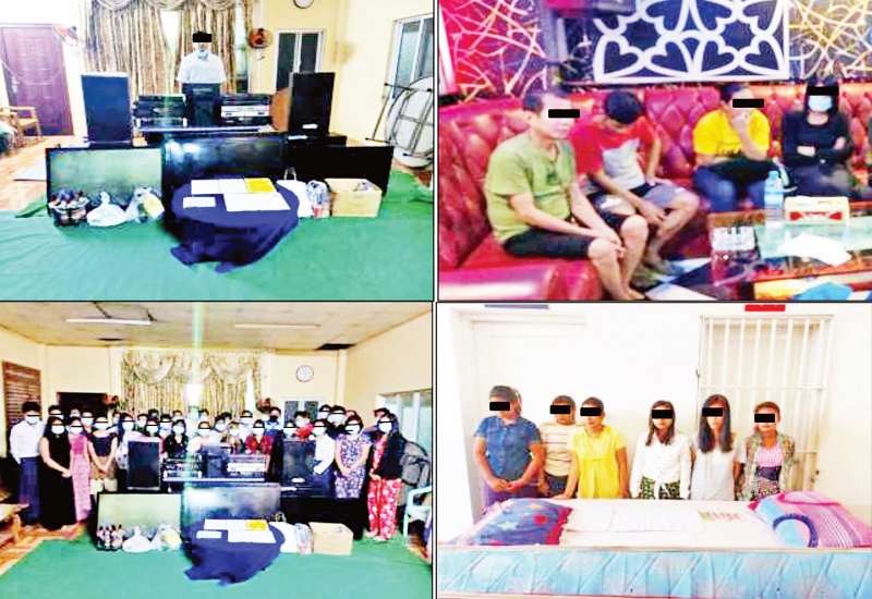 တိုင်းဒေသကြီးနှင့် ပြည်နယ်အသီးသီးတွင် ကိုဗစ်-၁၉ ရောဂါ ကာကွယ်ရေး စည်းကမ်းချက်များအား လိုက်နာခြင်း မရှိသည့် KTV ၊ Bar ၊ အနှိပ်ခန်းနှင့် ပြည့်တန်ဆာလုပ်ငန်း လုပ်ကိုင်နေသည့် နေအိမ်၊ ဆိုင်များ အား ဖော်ထုတ်ဖမ်းဆီး အရေးယူခဲ့ကြောင်း မြန်မာနိုင်ငံရဲတပ်ဖွဲ့၏ သတင်း ထုတ်ပြန်ချက်အရ သိရသည်။
