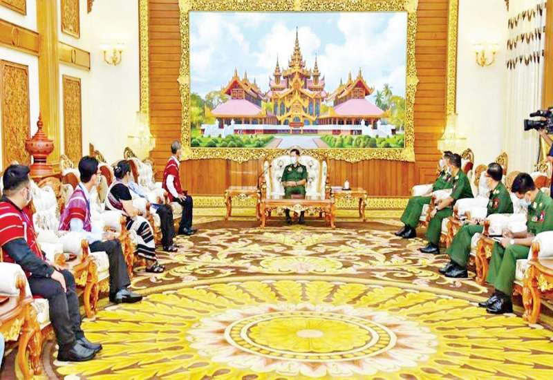 တပ်မတော် ကာကွယ်ရေးဦးစီးချုပ် ဗိုလ်ချုပ်မှူးကြီးမင်းအောင်လှိုင်သည် KNU/ KNLA (PC) ငြိမ်းချမ်းရေးကောင်စီအဖွဲ့ဥက္ကဋ္ဌ စောထော့လေး ဦးဆောင်သောကိုယ်စားလှယ်အဖွဲ့အား ယမန်နေ့ မွန်းလွဲပိုင်းတွင် နေပြည်တော်ရှိ ဘုရင့်နောင်ရိပ်သာဧည့်ခန်းမဆောင်၌ လက်ခံတွေ့ ဆုံသည်။