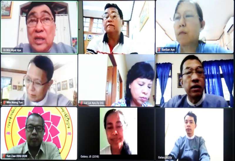 ကိုဗစ်-၁၉ ကပ်ရောဂါကာလအတွင်း နိုင်ငံတော်အစိုးရ၏ ကိုဗစ်-၁၉ စီးပွားရေးကုစားမှု အစီအစဉ် (CERP) စီမံချက်အရ ဧရာဝတီ တိုင်းဒေသကြီး၊ ရန်ကုန်တိုင်းဒေသကြီးနှင့် ရှမ်းပြည်နယ် တို့ရှိ ထိခိုက်လွယ်အုပ်စုများ၊ အနာကြီးရောဂါခံစားနေရသူများကို စောင့်ရှောက်နေသည့် ဂေဟာ များအတွက် အထူးလူမှုကာကွယ်စောင့်ရှောက်ရေးပံ့ပိုးကူညီထောက်ပံ့မှုများကို ယနေ့တွင် Video Conferencing စနစ်ဖြင့် ဆက်သွယ်ဆောင်ရွက်ခဲ့သည်။