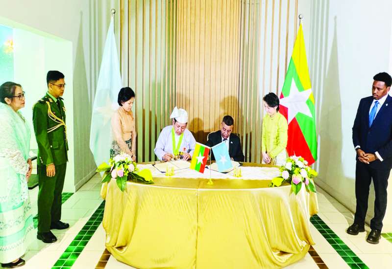 ပြည်ထောင်စုသမ္မတမြန်မာနိုင်ငံတော်နှင့် ဆိုမာလီယာဖက်ဒရယ် သမ္မတနိုင်ငံတို့သည် ကုလသမဂ္ဂပဋိညာဉ်စာတမ်းပါမူကြီးများနှင့် အပြည်ပြည်ဆိုင်ရာ ဥပဒေတို့ကိုအခြေခံပြီး သံတမန်ဆက်ဆံရေးနှင့် ကောင်စစ်ဆက်ဆံရေးဆိုင်ရာ ဗီယင်နာကွန်ဗင်းရှင်းတို့နှင့်အညီ နှစ်နိုင်ငံချစ်ကြည်ရင်းနှီးမှုနှင့် ပူးပေါင်းဆောင်ရွက်မှုတိုးတက်ခိုင်မာစေရန် ဆန္ဒရှိကြသည့် အားလျော်စွာ ၂၀၂၆ ခုနှစ် ဇန်နဝါရီ ၉ ရက်မှစတင်၍ နှစ်နိုင်ငံအကြား သံအမတ်ကြီးအဆင့်ဖြင့် သံတမန်အဆက်အသွယ်ထူထောင်ကြသည်။