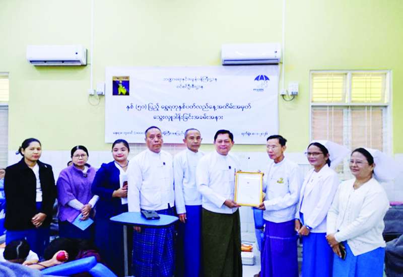 ဘဏ္ဍာရေးနှင့်အခွန်ဝန်ကြီးဌာန ပင်စင်ဦးစီးဌာန၏ နှစ် (၅၀) ပြည့် ရွှေရတုအထိမ်းအမှတ်အဖြစ် ဝန်ထမ်းများသည် နေပြည်တော်ရှိ အထွေထွေရောဂါကုဆေးရုံကြီး (ခုတင်၁၀၀၀) ၌ ယမန်နေ့က စုပေါင်းသွေးလှူဒါန်းသည်။