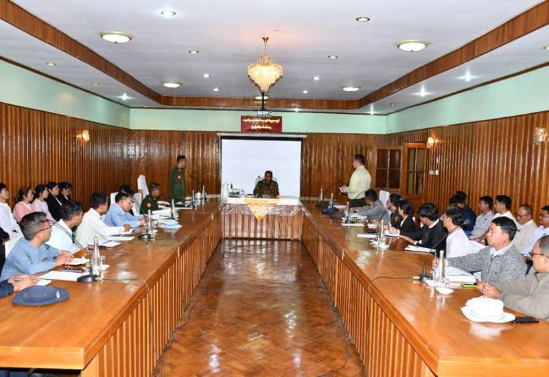 ရှမ်းပြည်နယ်(မြောက်ပိုင်း)၊ မိုင်းရယ်မြို့တွင် ၂၀၂၅ ခုနှစ်၊ ပါတီစုံဒီမိုကရေစီ အထွေထွေရွေးကောက်ပွဲ အပိုင်း(၂)အောင်မြင်စွာကျင်းပနိုင်ရေး လုပ်ငန်းညှိနှိုင်းအစည်းအဝေးကို ယနေ့နံနက်ပိုင်းတွင် အဆိုပါမြို့ရှိ အထွေထွေအုပ်ချုပ်ရေးဦးစီးဌာန အစည်းဝေးခန်းမ၌ပြုလုပ်ရာ အရှေ့မြောက်တိုင်းစစ်ဌာနချုပ်တိုင်မှူး ဗိုလ်မှူးချုပ်အေးမင်းဦးနှင့် ပြည်နယ်ရွေးကောက်ပွဲကော်မရှင်အဖွဲ့ခွဲ(လာရှိုး)မှ တာဝန်ရှိသူများ၊ ဌာနဆိုင်ရာတာဝန်ရှိသူများ တက်ရောက်ကြသည်။