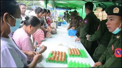 အောင်မြေသာစံမြို့နယ်တွင် အလယ်ပိုင်းတိုင်းစစ်ဌာနချုပ်က ဆန်၊ ဆီ၊ ဆား၊ အသီးအနှံများ စျေးနှုန်းသက်သာစွာဖြင့် ရောင်းချပေး