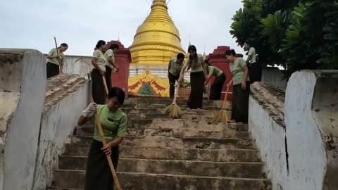 မင်းဘူးမြို့ သီရိမင်္ဂလာ မူလတန်ကျောင်းတွင် ဌာနပေါင်းစုံ စုပေါင်းသန့်ရှင်းရေး ပြုလုပ်