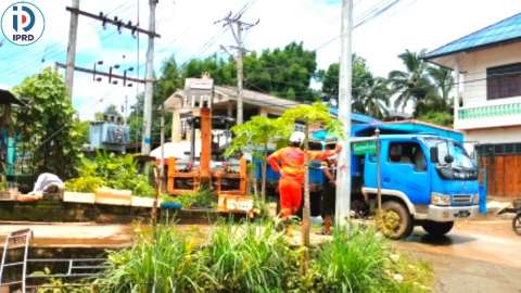 မိုင်းယောင်းမြို့နယ်တွင် မိုးသည်းထန်မှုကြောင့် မြို့တွင်းလမ်းများ ရေလျှံကာ စုပုံလာသည့် အမှိုက်များ စုပေါင်းရှင်းလင်း