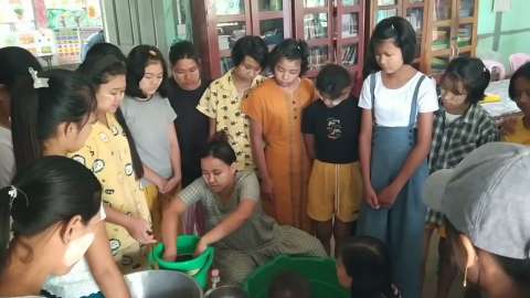 တကောင်းမြို့ လူထုအခြေပြုဗဟိုဌာနခန်းမတွင် ဘက်စုံသုံးဆပ်ပြာဆီ လုပ်နည်း သင်တန်းဖွင့်လှစ်