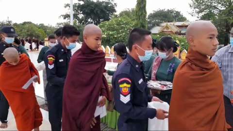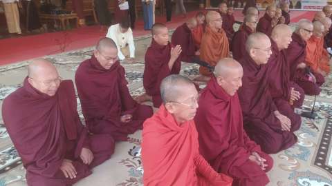 ညောင်ဦးမြို့နယ်၌ ကဆုန်လပြည့်နေ့ ပင့်သံဃာ ၁၀၈ ပါးအား ရွှေစည်းခုံစေတီရင်ပြင်တွင် ဆွမ်းဆန်စိမ်းလောင်းလှူ
