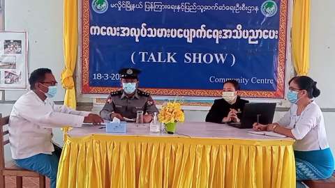 အောင်လံမြို့ Community Center ခန်းမတွင် မီးဘေးအန္တရာယ် ကြိုတင်ကာကွယ်ရေး အသိပညာပေး Talk Show ဆောင်ရွက်