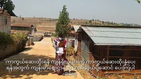 နောင်တရားမြို့၌ ဘာသာစကားနှစ်မျိုးဖြင့် ကိုဗစ်-၁၉ရောဂါ ထိန်းချုပ်ရေး အသိပညာပေး ဆောင်ရွက်