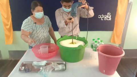 သုံးခွမြို့ (Community Centre) ခန်းမတွင် ဆပ်ပြာဆီပြုလုပ်နည်းသင်တန်းဖွင့်လှစ်