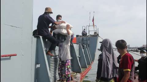 တရုတ်နိုင်ငံမှ ပြန်လည်၀င်ရောက်လာသည့် မြန်မာနိုင်ငံသားများအား ချင်းရွှေဟော်မြို့ တရုတ်-မြန်မာ နှစ်နိုင်ငံနယ်စပ်ဂိတ်တွင် ပြန်လည်လွှဲပြောင်းပေးအပ်