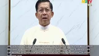 နိုင်ငံတော်စီမံအုပ်ချုပ်ရေးကောင်စီ၏ (၆)လပြည့် နိုင်ငံတော်တာဝန် ထမ်းဆောင်ခဲ့မှုနှင့် ပတ်သက်၍ နိုင်ငံတော်စီမံအုပ်ချုပ်ရေးကောင်စီဥက္ကဋ္ဌ ဗိုလ်ချုပ်မှူးကြီး မင်းအောင်လှိုင် ပြောကြားသည့်မိန့်ခွန်း